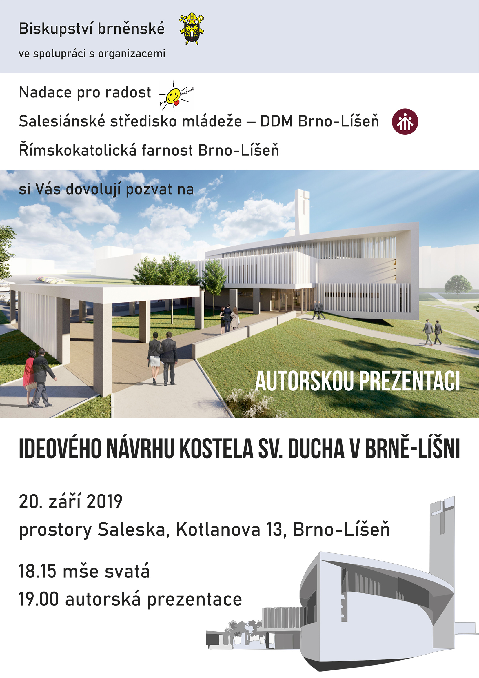 Zveme všechny zájemce na autorskou prezentaci ideového návrhu nového kostela Ducha Svatého v Líšni 20. září 2019 do Saleska. Continue reading